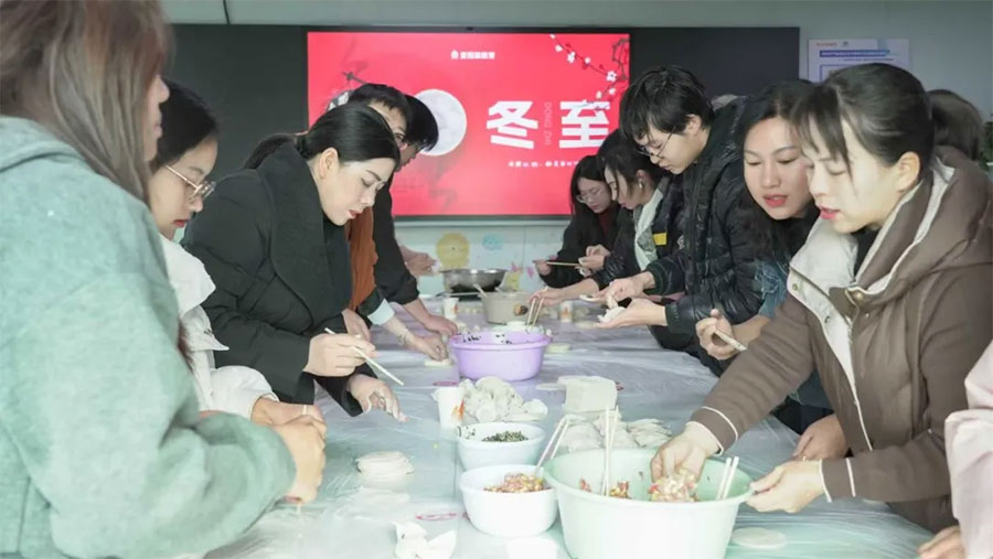 冬至來臨之際,愛因森教育各校區舉行“冬至福至,情暖愛因森”為主題的系列特別活動,來自各省份學員代表齊聚,一起包餃子、煮湯圓,在濃厚同窗情誼中共敘收獲,在愛因森教育感受家的溫暖。